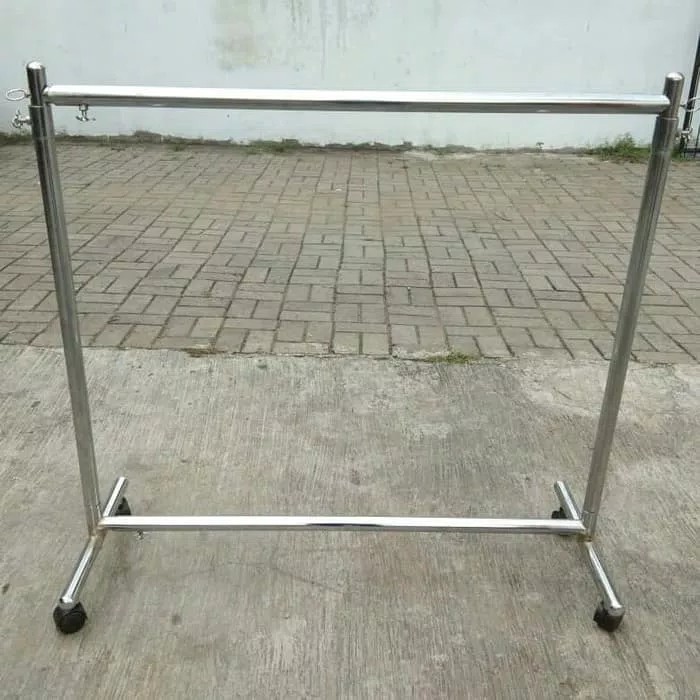 Batang stainless 4 x 2 m panjang hemat ruang dan mudah digunakan karena mudah dilipat maju mundur.